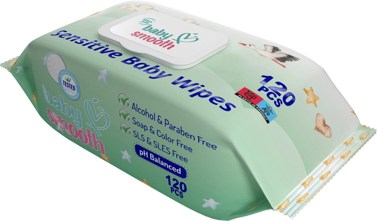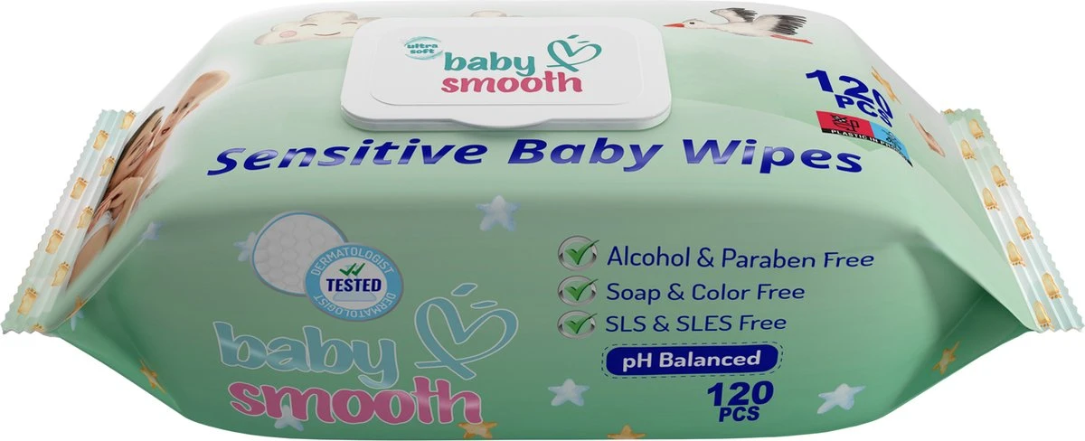 Baby Smooth Sensitive billendoekjes, De milde reinigingslotion van de doekjes reinigt en verzorgt de gevoelige babybilletjes. De doekjes maken de handjes, billetjes en gezichtje gemakkelijk schoon. De doekjes bevatten geen alcohol waardoor ze geschikt zijn voor de gevoelige baby- en kinderhuid.