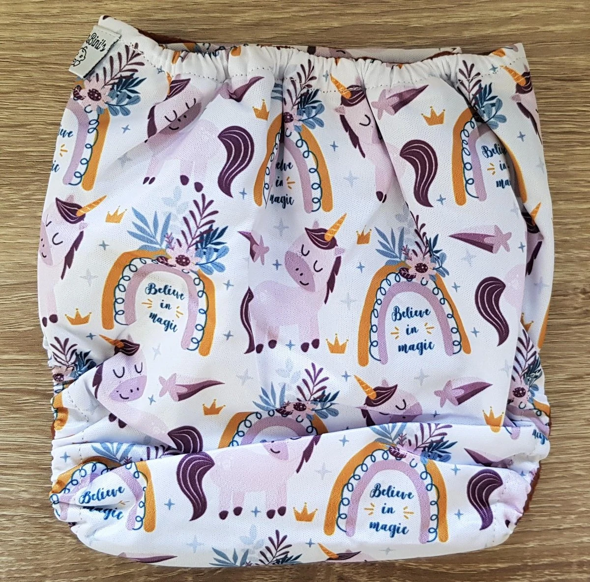 BonBini’s® wasbare luiers zijn geschikt voor baby’s en kinderen t/m +- 2 jaar van 3 -15 kg. De wasbare luier is verstelbaar in meerdere maten en daardoor al te gebruiken vanaf de geboorte. Het materiaal is gemaakt van waterdichte stof en de binnenzijde is gemaakte van zacht koffiebruin gekleurd micro fleece/polyester, dat bijdraagt aan comfort voor de gevoelige babyhuid. Bovendien zijn BonBini’s wasbare luiers te gebruiken als zwemluier. Hierbij geldt het advies geen extra inlegger te gebruiken om het gewicht van de luier zo laag mogelijk te houden.