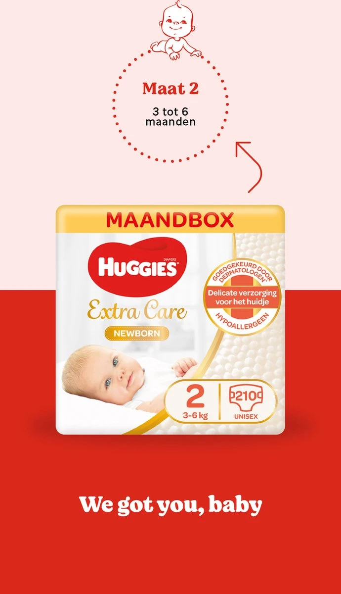 Jouw omhelzing bieft een milde bescherming voor het gevoelige huidje. Huggies® Newborn luiers geven een zachte en beschermende omhelzing voor pasgeboren baby’s. De luiers bevatten unieke zachte kussentjes, een rekbare tailleband voor beter comfort en een speciale binnenzak bij de tailleband die lekken helpt voorkomen. Huggies® Newborn luiers: onze beste bescherming voor pasgeboren baby’s!