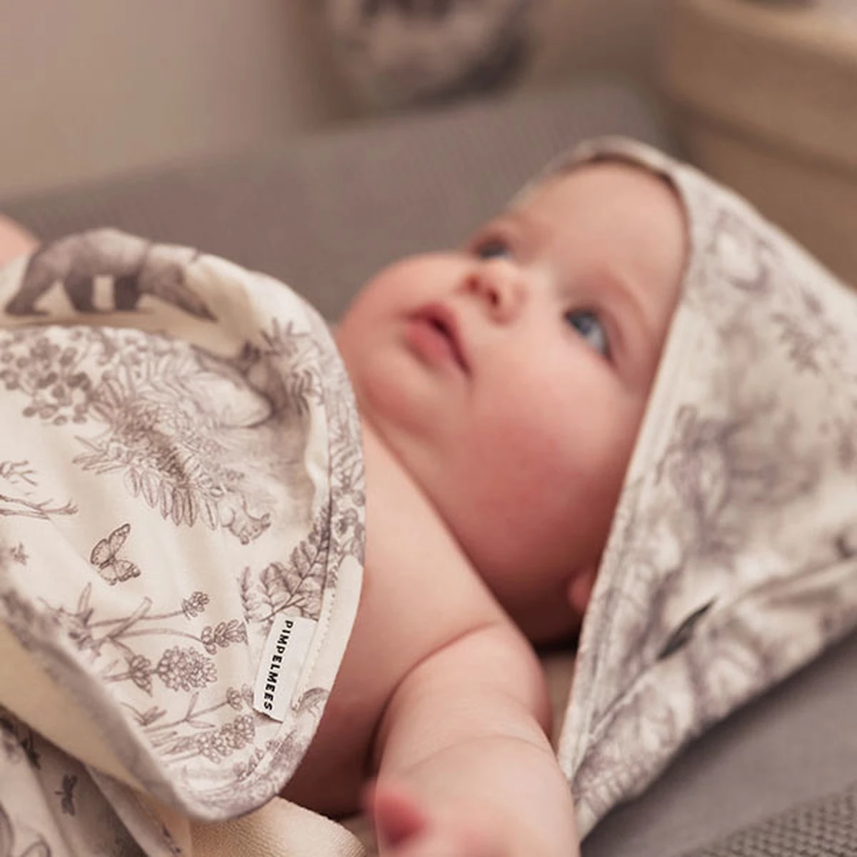 Na het badderen droog je jouw kleintje in een handomdraai af met deze geweldige badcape. De buitenkant heeft een lieve print uit het bosdieren thema van Pimpelmees x Jollein. De binnenkant is echter effen off-white van badstof. Dit neemt beter en gemakkelijker vocht op dan regulier katoen. Dat is nog eens makkelijk afdrogen!