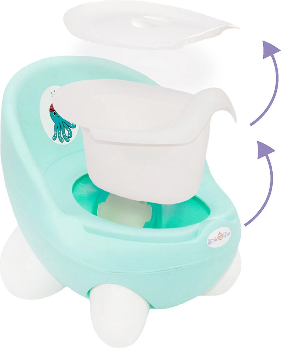 MILK&MOO PLASPOTJE: Milk&Moo zitpotje is gemaakt van BPA-vrij plastic van goede kwaliteit. Het stoelachtige ontwerp met de juiste maat, gladde randen, rugleuning en zijarmleuningen geven uw kind optimale ondersteuning om goed te gaan zitten en op te staan. We hebben rekening gehouden met gebruiksgemak, reinigingsfuncties en het algehele ontwerp om het zindelijkheidstrainingtoilet gemakkelijker te maken. Het is ook heel schattig voor zowel jongens als meisjes. Gewicht: 2,6 lb, 1180 gr Afmetingen: 11x11x12 inch, 28x28x32 cm. VEILIG IN GEBRUIK: Milk&Moo-materialen geven altijd de meest intieme zorg voor de gezondheid van uw kind. Dit plastic babypotje is gemaakt van BPA-vrije materialen en andere schadelijke stoffen om veilig gebruik te beloven. Om een ​​geschikte samenstelling te garanderen die speciaal is vervaardigd voor zuigelingen en jonge kinderen, zijn we gecertificeerd volgens Safety Certification Foundations. GEMAKKELIJK TE SCHOONMAKEN PLASPOTJE: Dankzij het handige binnenpotje is deze potje stoel super eenvoudig schoon te maken. Het hele product is gemaakt van plastic, dus afvegen en desinfecteren is eenvoudig. Til eenvoudig het binnenpotje eruit, maak het leeg en veeg het schoon of spoel het af met water. Ouders merken ook op dat de vorm van het ingebouwde spatscherm ook zeer effectief is voor zowel meisjes als jongens om morsen te voorkomen en het schoner in gebruik te maken. Door de extra afdekkap voor het potje staat hij netjes in je badkamer. NON SLIP DESIGN: Milk & Moo peuterpotje heeft antislipmateriaal langs de onderrand om ervoor te zorgen dat het niet over de vloer glijdt en stevig op zijn plaats blijft voor veiligheid, zodat uw baby niet uitglijdt of zich bezeert. DRAAGBARE POTJE TRAINING: Deze potje stoel geeft je de flexibiliteit van zindelijkheidstraining van overal in huis en zelfs verplaatsen van kamer naar kamer. Je kunt het handig houden voor gebruik door je kind, zowel thuis als op reis. Door zijn compacte formaat is hij ook geschikt voor nog kleinere badkamers.