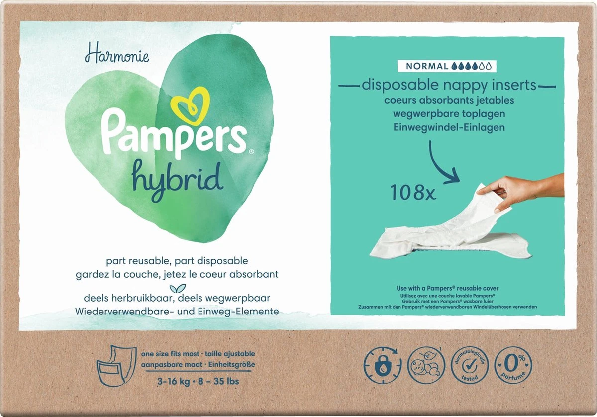 Pampers® Pampers Harmonie Hybrid – Wasbare Luier – 108 Absorberende Wegwerpbare Toplagen