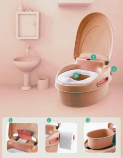 Housie 3-in-1 Plaspotje – Plaspotje Kind – Potje Peuter – Potje Met Deksel – WC Potje Peuter – WC Verkleiner – Opstapje – Roze