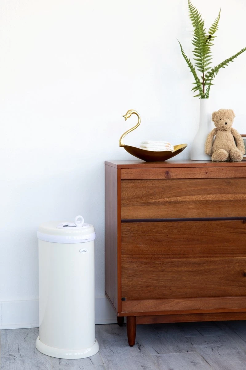 De UBBI is makkelijk te openen en de zakken zijn zeer makkelijk te wisselen. Door het unieke schuifsysteem ontsnappen er minimaal geurtjes tijdens het openen en sluiten van de emmer. De UBBI is tevens voorzien van een kinderslot zodat de kleintjes niet bij de vieze luiers kunnen komen. En is je kind uit de luiers? Dan gebruik je de UBBI in je badkamer, toilet of keuken. Afmeting: 58cm (H) x 38cm (D) x 27cm (B).