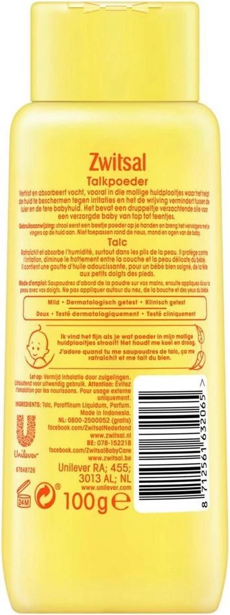 - Zwitsal Talkpoeder houdt het babyhuidje knuffelzacht en soepel